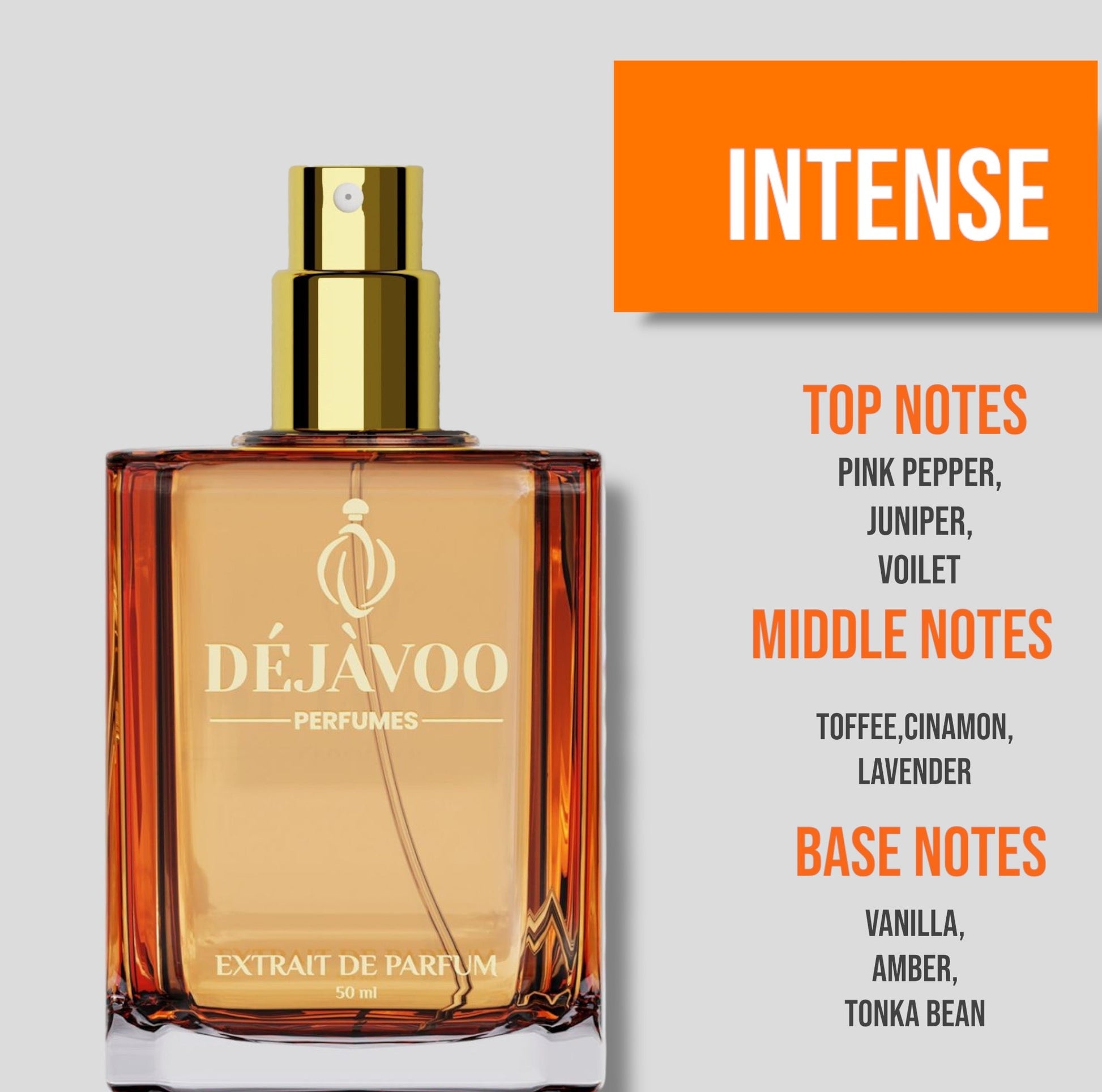 DejaVoo’s recreation of Stronger With You Intense by Armani is a warm, spicy, and addictively intense fougère with key notes of pink pepper, lavender, vanilla, amber wood, and tonka bean. It balances spicy warmth and sweet gourmand accords with aromatic herbs and a velvety suede base.