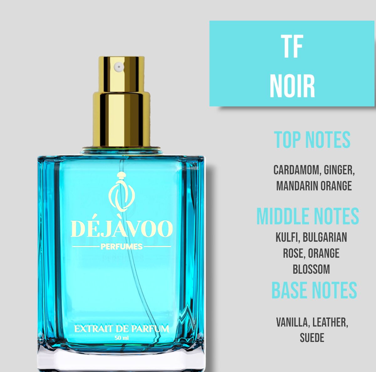DEJAVOO'S inspired version of Tom Ford Noir is a sophisticated and elegant fragrance that exudes a sense of mystery and allure. It combines notes of bergamot, violet flower, black pepper, and patchouli, creating a luxurious and sensual scent that is perfect for evening wear or special occasions. The blend of spicy and floral notes in Tom Ford Noir gives it a unique and captivating character, making it a popular choice for those who appreciate refined and distinctive fragrances.
