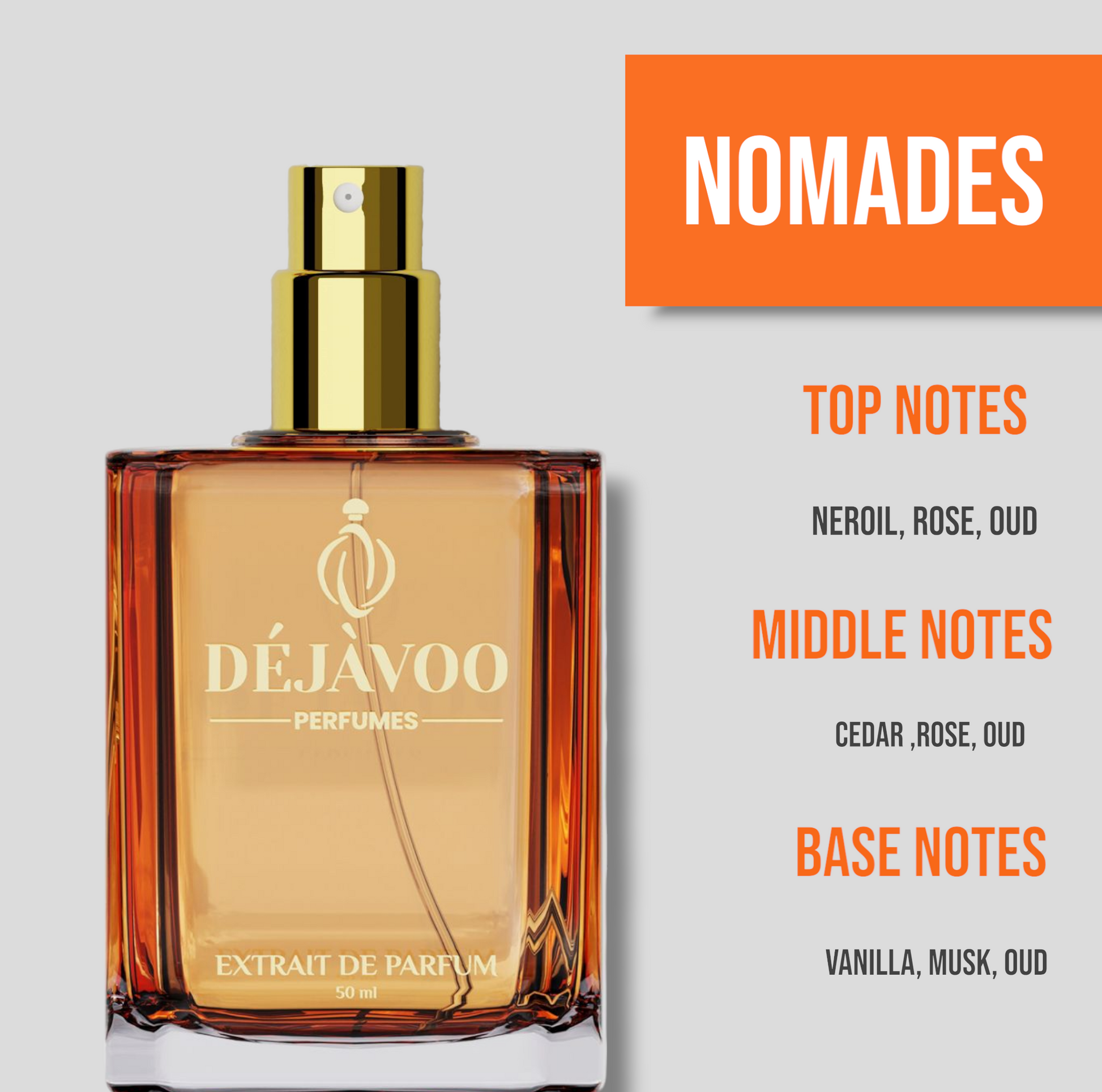 Dejavoo-inspired version of Louis Vuitton Ombre Nomade, fusing exotic and rich notes to craft a luxurious and captivating fragrance experience. This reinterpretation could combine elements that elevate the original scent's sophisticated and elegant essence, creating a unique and enchanting olfactory journey for fragrance enthusiasts