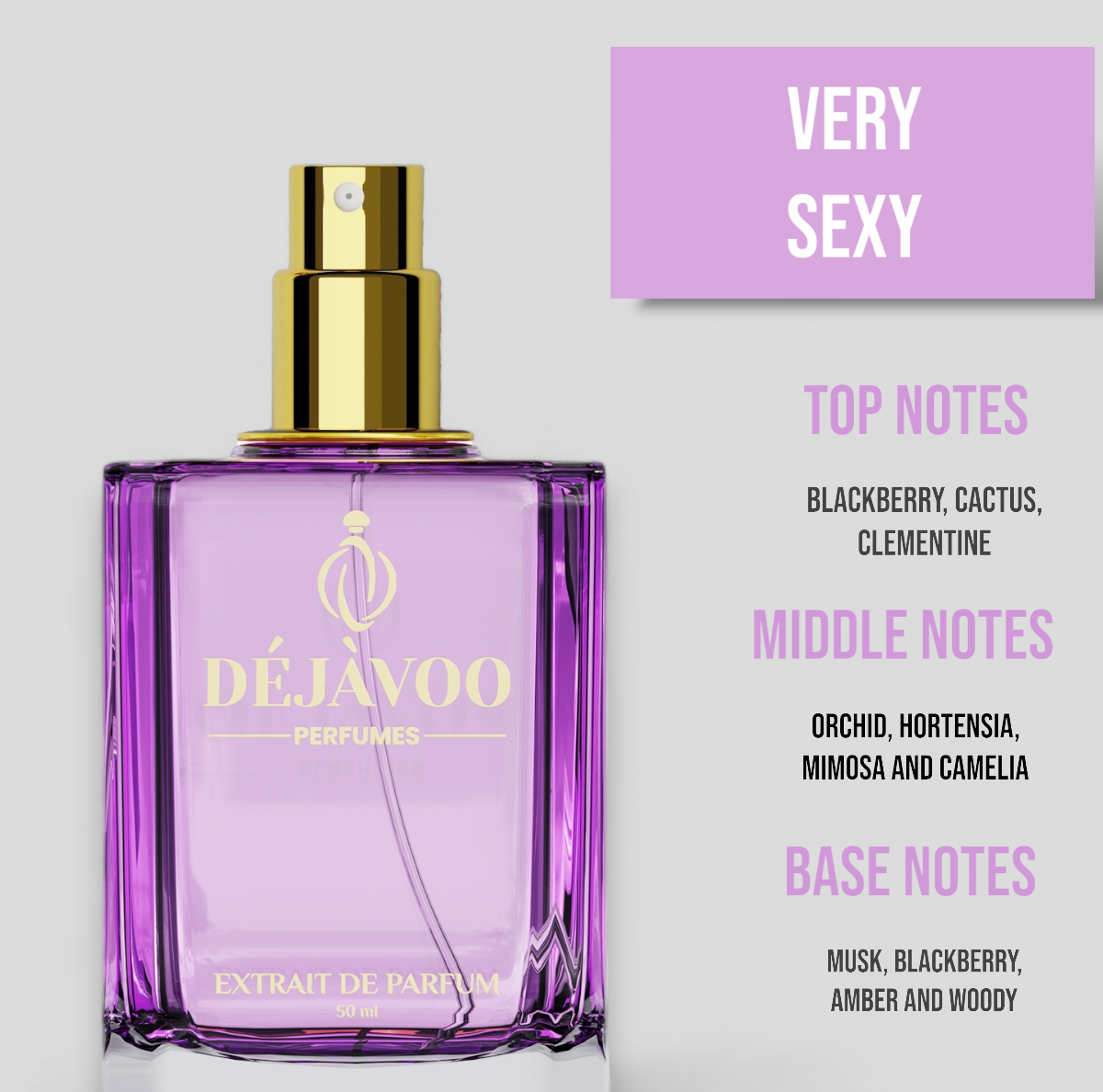 We have an inspired fragrance that is similar to Victoria's Secret Very Sexy. Our fragrance features top notes of clementine, cactus flower, and vanilla orchid, middle notes of blackberry, sage, and freesia, and base notes of red amber, musk, and eucalyptus. Our fragrance is long-lasting and affordable.